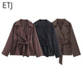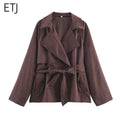 Featuring a classic turn-down collar, belted waist, and refined button details, it gracefully defines the silhouette while maintaining an effortless flow. Ideal for layering through autumn and winter, this coat is a wardrobe essential that transitions seamlessly from day to night.
